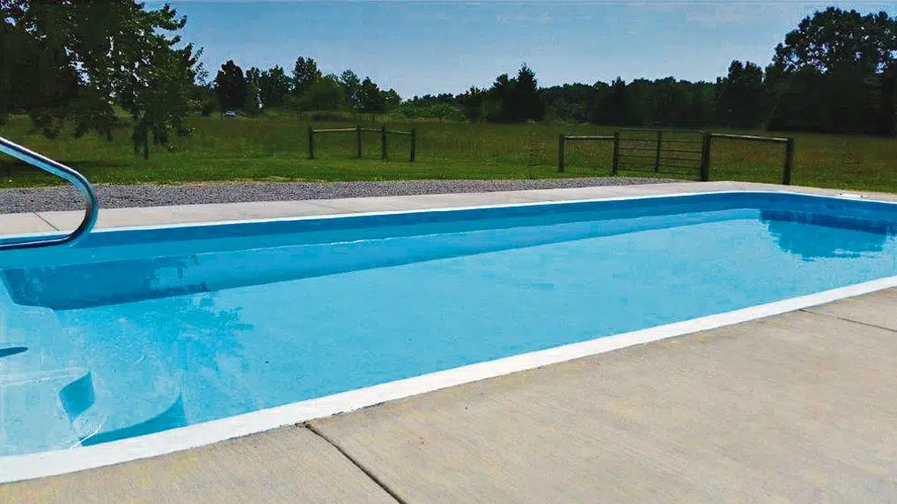 The Lakeside pool model. Dimensions: 12′ x 28′. Depth: 4’6″. High-quality fiberglass pool perfect for your outdoor space.